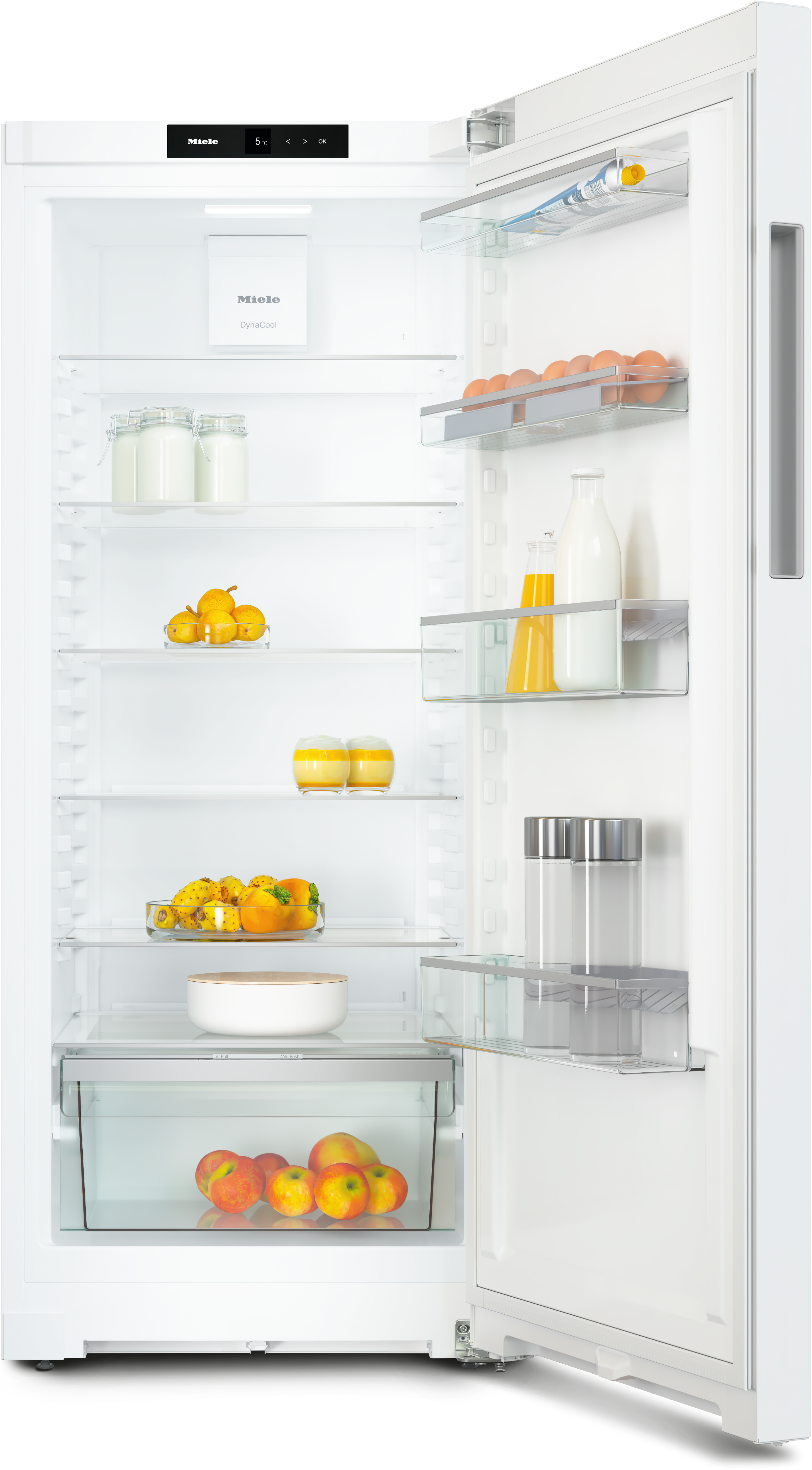 Отдельно стоящий холодильник с функциями DailyFresh, DynaCool и ComfortClean, без ручек.