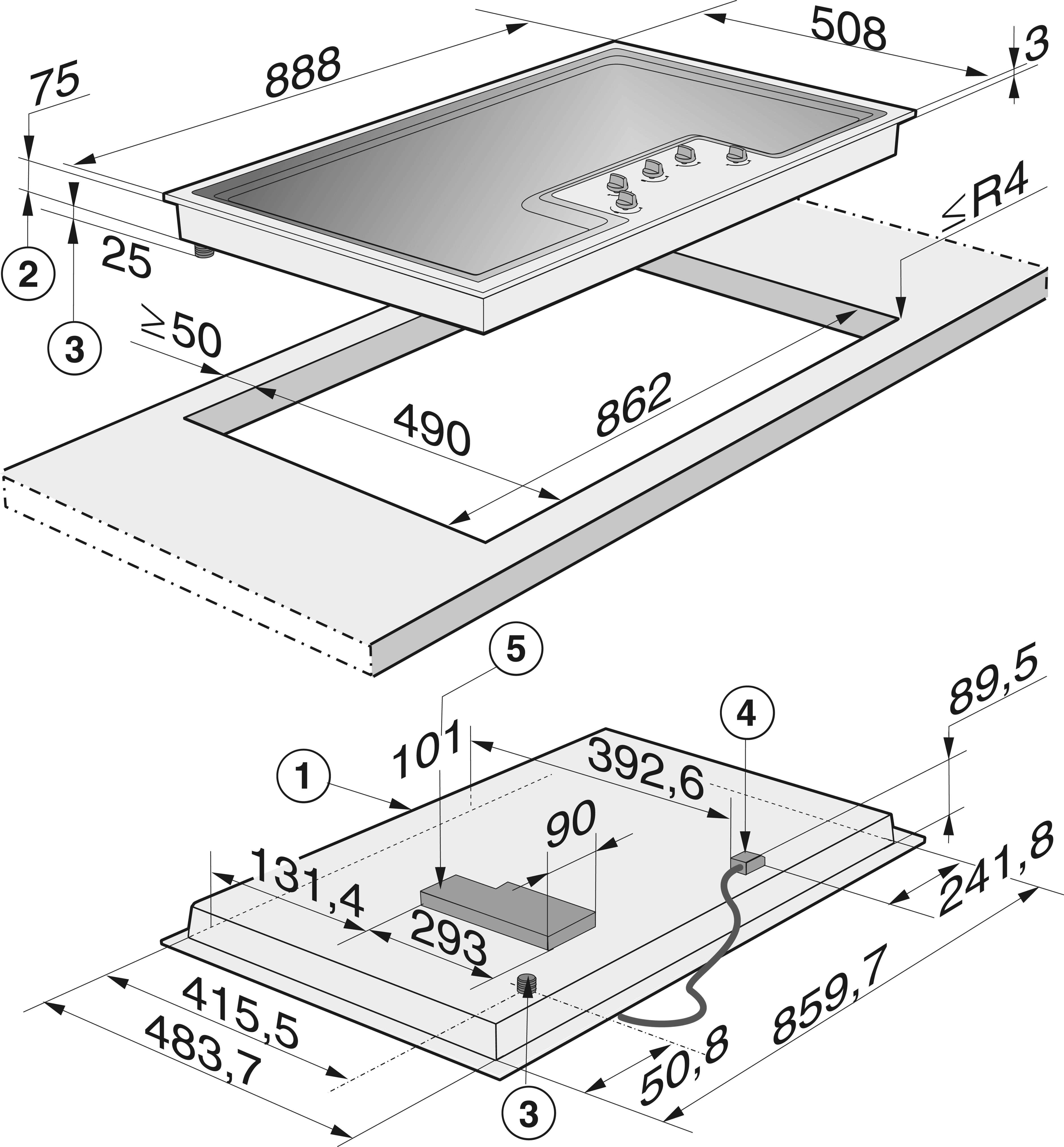 Индукционные панели конфорок со встроенной вытяжкой