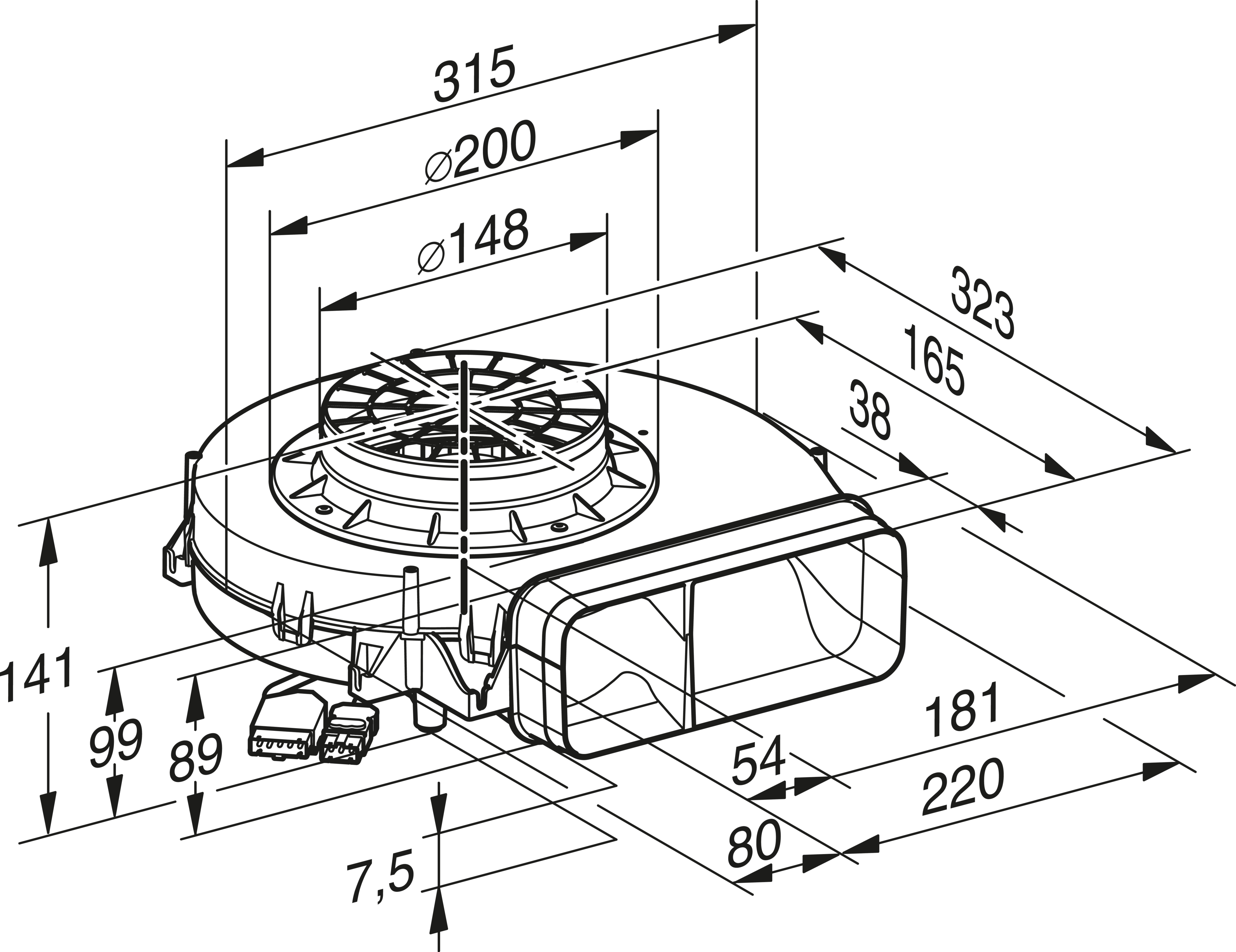 Высота корпуса с сетевой коробкой в мм
