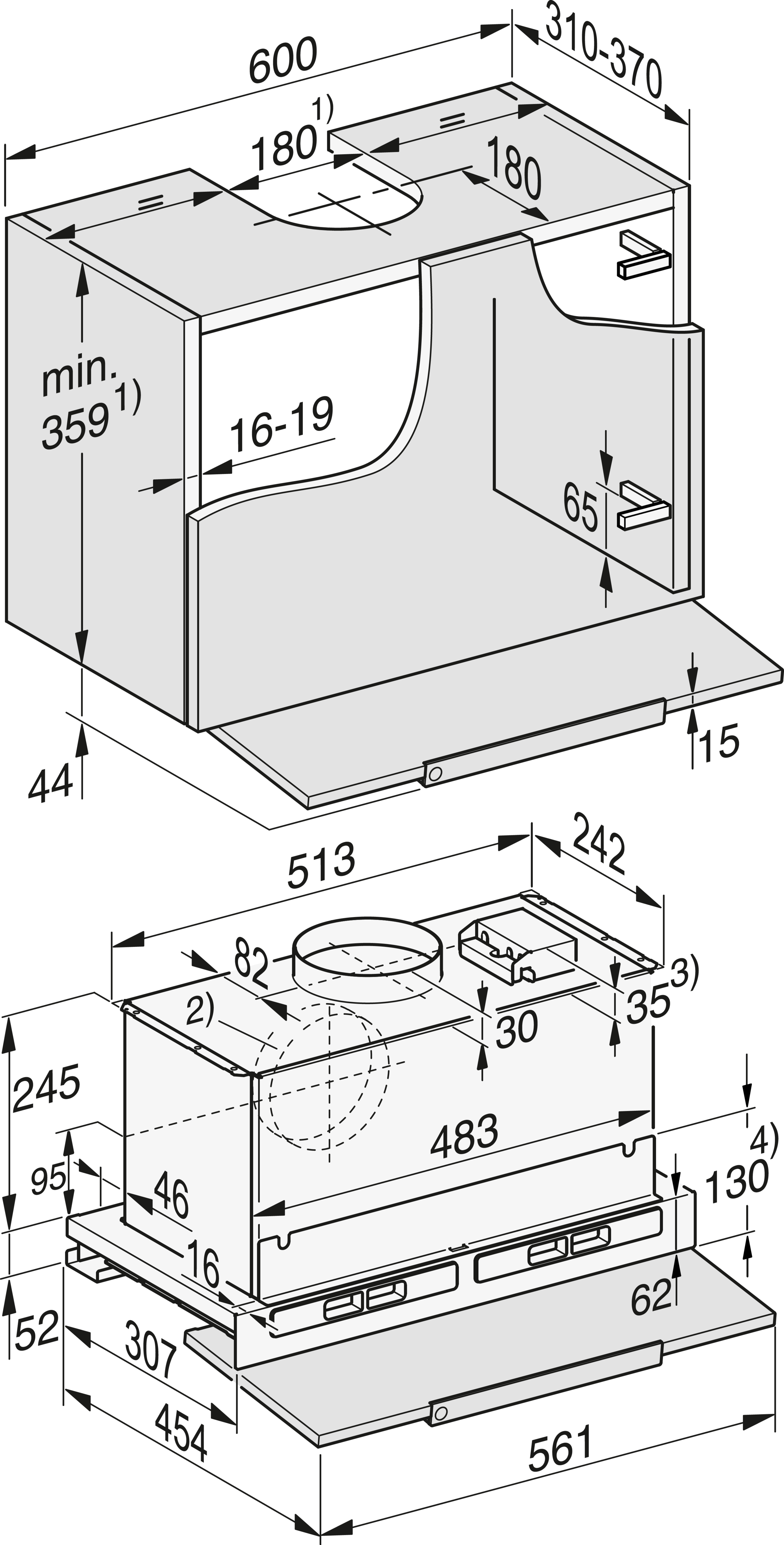 Высота корпуса вытяжки, мм