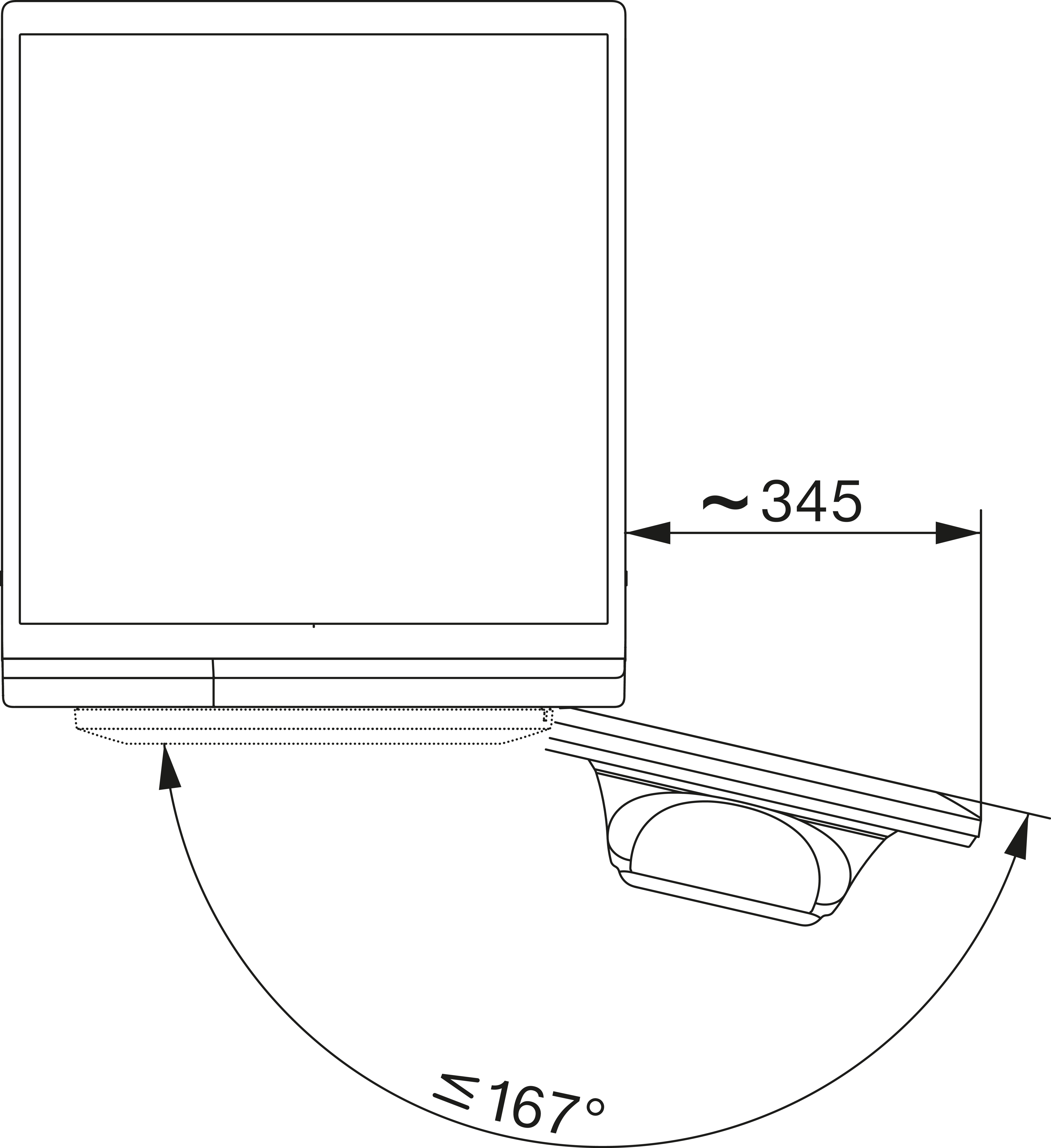 Глубина прибора с открытой дверцей, см