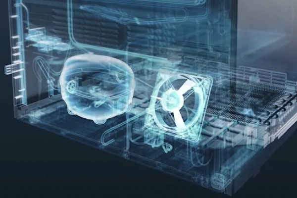 Обеспечивает динамическое охлаждение конденсатора и быстрое удаление теплоты с его поверхности. - из-за этого повышается эффективность работы системы охлаждения. А отсутствие конденсаторной решетки в тыльной части холодильника придаёт устройству еще более привлекательный вид.