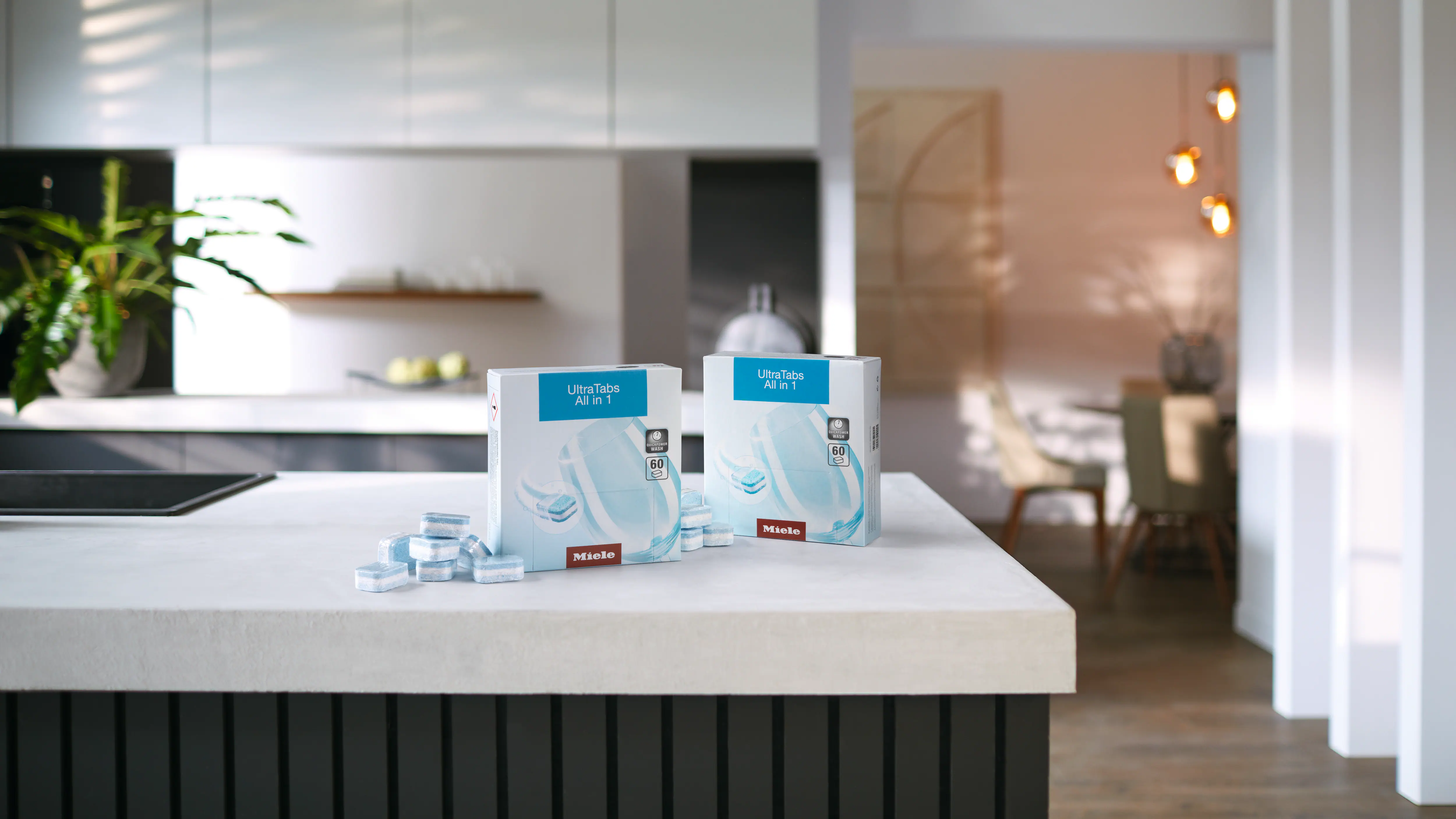 Таблетки для мытья посуды UltraTabs All in выполняют несколько задач: ополаскиватель, соль, защита стеклянных изделий. Они удобны - водорастворимая и биоразлагаемая упаковка позволяет использовать таблетки без распаковки.